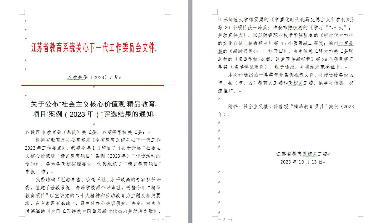 近日,由江苏省教育系统关工委组织开展的“社会主义核心价值观‘精品教育项目’案例(2023年)”评选活动落下帷幕。本次比赛共有来自普教系统和高等学校100多部作品参赛,成人片 陈明选教授讲授的《延安精神的内涵与时代价值》荣获一等奖。陈明选教授的精品教育项目课程内容,立足新时代思想政治教育,以深入浅出的党性胸怀,播撒炽热而闪耀的新旧时代交际的火种,从延安时期的辉煌业绩、延安精神的内涵特征、延安精神的产生条...