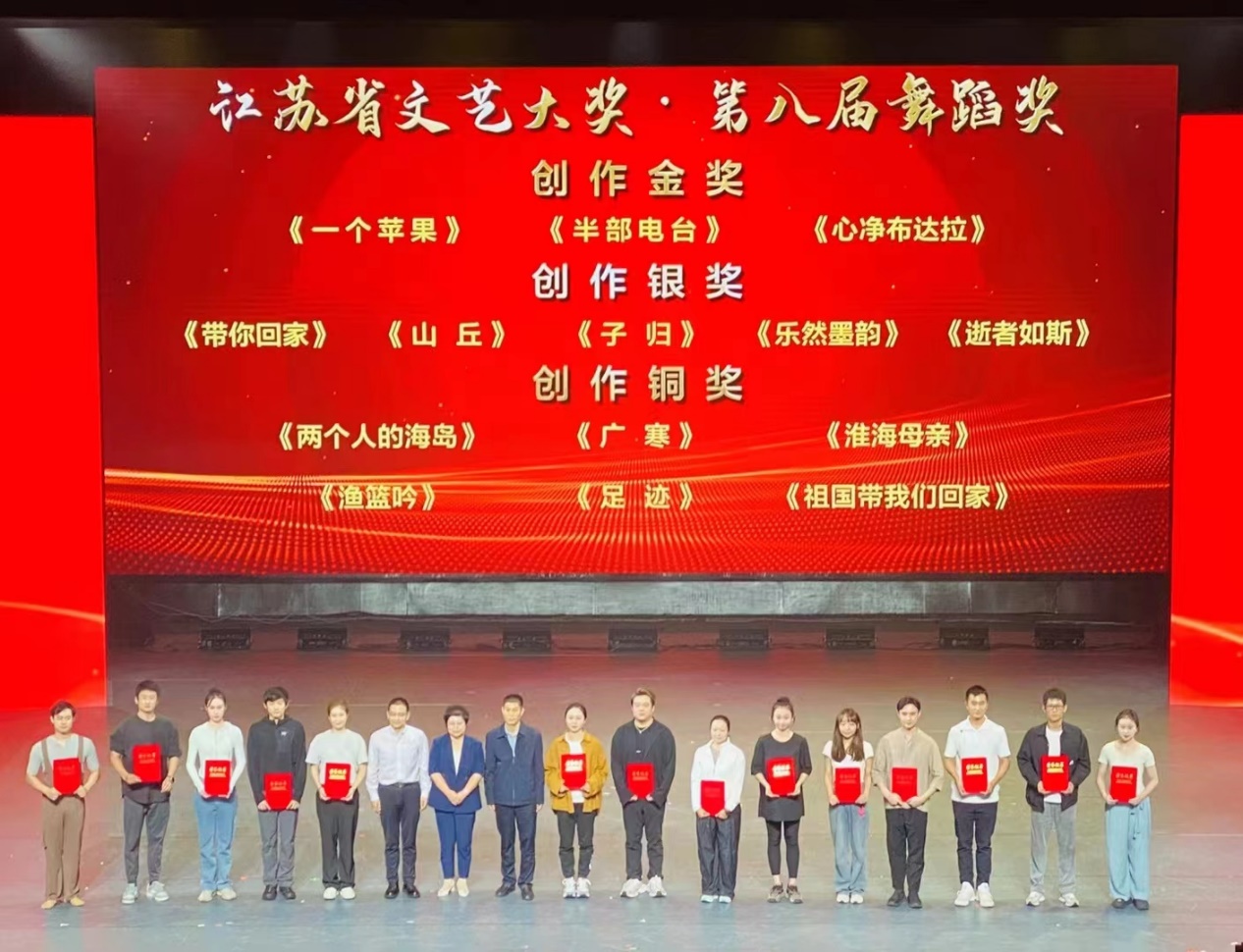 11月2日,由江苏省文学艺术界联合会、中共南通市委宣传部主办,江苏省舞蹈家协会、南通市文学艺术界联合会承办,南通市舞蹈家协会协办的2023年江苏省文艺大奖·第八届舞蹈奖决赛在南通更俗剧院进行了为期6天的比赛及展演,现已圆满落幕。由我校成人片 舞蹈系刘悦钧副教授创作,王芳、叶凌飞、申旭光、郑雯雯团队共同指导完成的《心净布达拉》一举斩获创作金奖与表演银奖两项大奖,实现了我校在该奖项上群舞组别零的突破!“江苏...