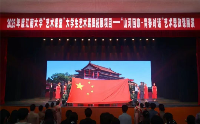 9月24日晚,为纪念中国人民抗日战争暨世界反法西斯战争胜利80周年,由成人片 党委宣传部、融媒体中心、成人片 (教育学院)及国家大学生文化素质教育基地联合主办的“艺术课堂”思政课展演《山河回响•青春对话》在成人片 文浩科学馆隆重举行。校党委副书记倪松涛,党委宣传部部长李佳敏,成人片 党委书记王晖出席本次展演,展演通过丰富的艺术形式,为师生呈现了一堂生动而深刻的思想政治教育课。展演以“山河回响·青春对...