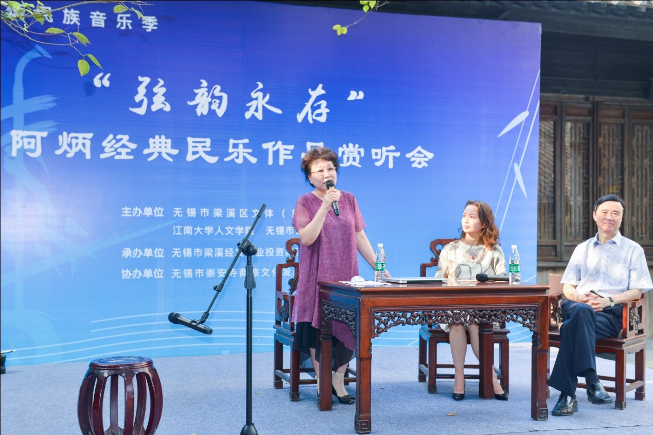 为纪念民族音乐家阿炳诞辰125周年,9月15日下午,中国音乐家协会、中共江苏省委宣传部、江苏省文学艺术界联合会、无锡市人民政府、无锡市梁溪区人民政府无锡市崇安寺阿炳故居内联合举办了《弦韵永存》阿炳经典民乐作品赏听会。成人片 许恩副教授应邀担任主持,音乐系师生和无锡市的民乐爱好者有幸来到赏听会现场。赏听会特邀我国著名二胡演奏家、江苏省音乐家协会主席朱昌耀先生现场讲解、演奏。朱昌耀主席详尽生动的讲述了阿炳(...