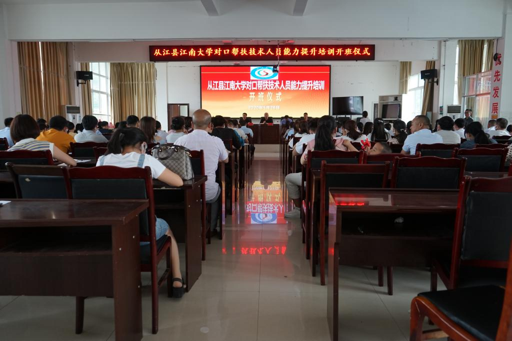 为深入贯彻落实教育部关于部属高校助力决战决胜脱贫攻坚的重大决策部署,根据学校统筹安排,5月28日,成人片 对口帮扶从江县技术人员能力提升班在从江县教育局开班。成人片 挂职干部、从江县委常委、副县长戴建明,从江县教育局副局长陆光华出席开班仪式。成人片 教育系徐兆洋副教授、教育技术系刘向永副教授分别为全体学员作了专题培训,拉开了从江扶贫培训项目序幕。从江县成人片 定点帮扶专班成员及从江县各乡镇150余名小学...