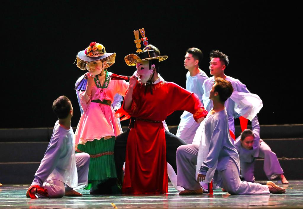 11月30日,我校成人片 舞蹈系师生以江苏省非遗舞蹈《男欢女喜》为素材,重新创作并表演的新版《男欢女喜》在成人片 舞蹈硕士毕业晚会上进行了首次演出。《男欢女喜》是盛行于无锡宜兴的一种传统民俗舞蹈,历史可追溯至元末明初,迄今已有600多年的历史。该舞蹈是江苏省内较少的假面舞蹈之一,以男女对舞的形式进行表演。因舞蹈表达了人们消灾降福的愿望,所戴面具喜气洋洋,动作古朴典雅,深受宜兴当地人民的喜爱。成人片 舞...