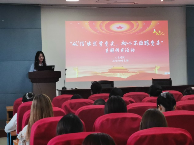 为深入推进党史学习教育,引导团员青年进一步坚定理想信念,激发团员青年的历史责任感,5月12日下午,成人片 汉语1903团支部在田楼209会议室举办“从’信’出发学党史,初心不改跟党走”主题团日活动。成人片 分团委书记赵丽敏出席了本次活动,2019级和2020级团干部共同观摩了此次团日活动。活动伊始,团支部书记首先就系列团日活动的整体方案进行了介绍。汉语1903团支部创新党史学习教育形式,以建党百年历程中中国共产党人...