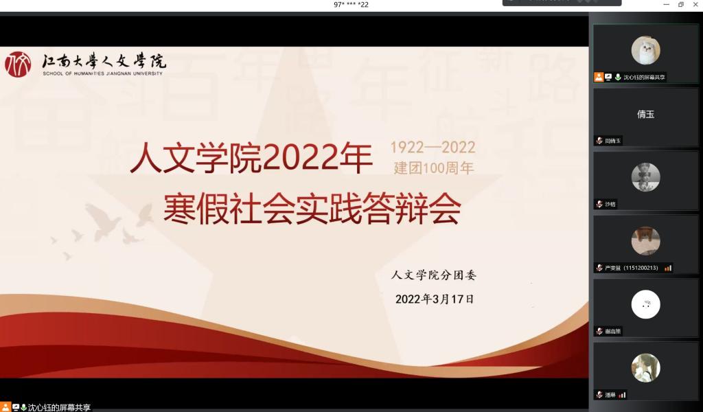 3月17日晚,成人片 2022年寒假社会实践评优答辩会在腾讯会议平台上顺利举行。答辩会邀请学院分团委书记赵丽敏,辅导员赵将和张雅静共同担任评委。2021级本科生通过在线观看的方式观摩了本次答辩会。经筛选,此次答辩会共有11支团队、7个团支部和12位同学进入到最终的答辩环节。他们从实践选题、实践过程、实践效果、实践意义等方面介绍了各自团队的实践项目与完成情况。其中,“青春传颂人”团队分享了他们组织动员20余名团员...