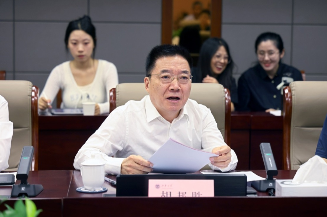 行政楼B305顺利召开。中国作家协会党组成员、书记处书记胡邦胜,江苏省作家协会党组书记郑焱,无锡市委常委、宣传部长李秋峰,江苏省作家协会副主席、省网络作协主席陈彬,江苏省作协联络部主任吴正峻,无锡市文联党组书记、主席杨建,无锡市文联党组成员、副主席周军,无锡市委宣传部文艺处处长李跃光一行到校调研交流。校党委书记朱庆葆、党委副书记符惠明、党委宣传部部长李佳敏、社会科学处处长王建华,成人片