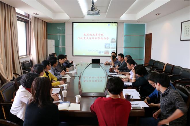 行政党支部与商学院行政教辅党支部在田家炳楼207会议室,就党支部工作进行了交流、学习,商学院党委书记李佳敏、成人片