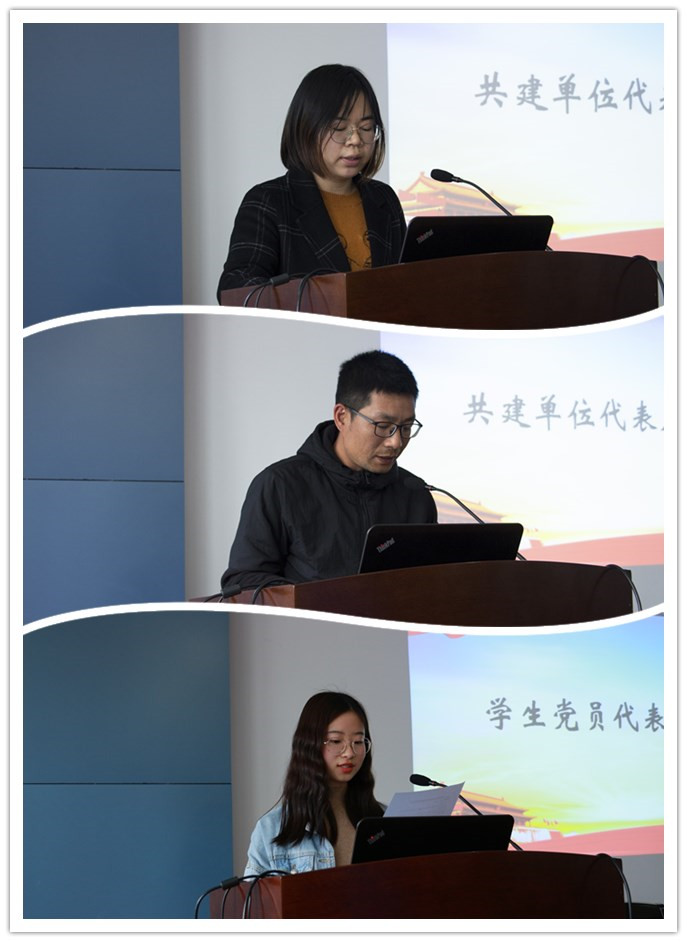 签约仪式后,共建单位代表上台发言。黄杨书记认为,此次签约仪式签下的不仅是一份协议,更是一份情谊、一份责任、一份承诺,并提出无锡市档案史志办机关第一支部将从结对共建内容、结对共建载体和支部品牌特色三个方面对工作进行落实;孙明涛老师则介绍了专项二教研室党支部的基本情况和对于共建结对活动的一些基本设想,指出体育部与成人片 有着千丝万缕的联系,并将共同为成人片 的教育发展提供坚强有力的保障;唐小雨作为学生党员代表进行发言。她认为学生党支部是高校党组织必不可少的组成部分,在结对共建活动中学生党员应不断提高个人党性修养,师生合力搭建好全员育人平台。她代表全体学生党员作出积极参与结对共建活动的承诺。