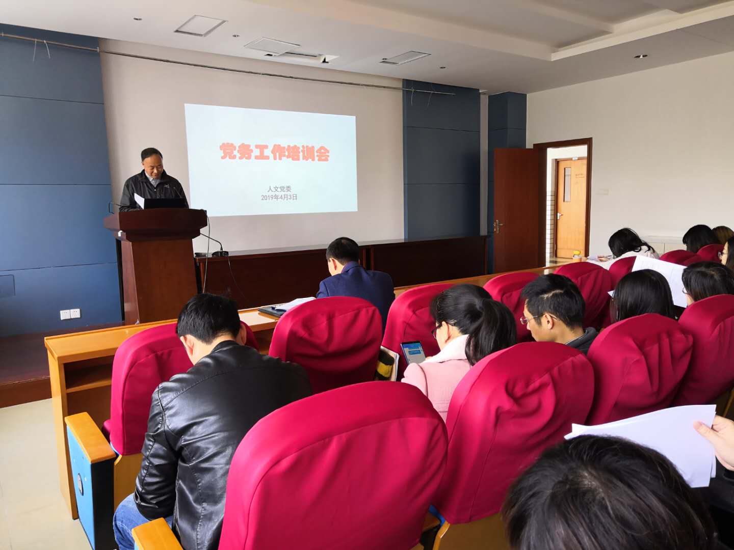 4月3日下午,成人片 在田家炳楼209会议室举行党务工作专题培训会暨第四次党代会工作动员部署会。院党委书记沈贵鹏、党委副书记兼副院长吴宝锁、院党委秘书陆雪英以及学院各党支部书记委员等参加会议。会议由陆雪英主持。