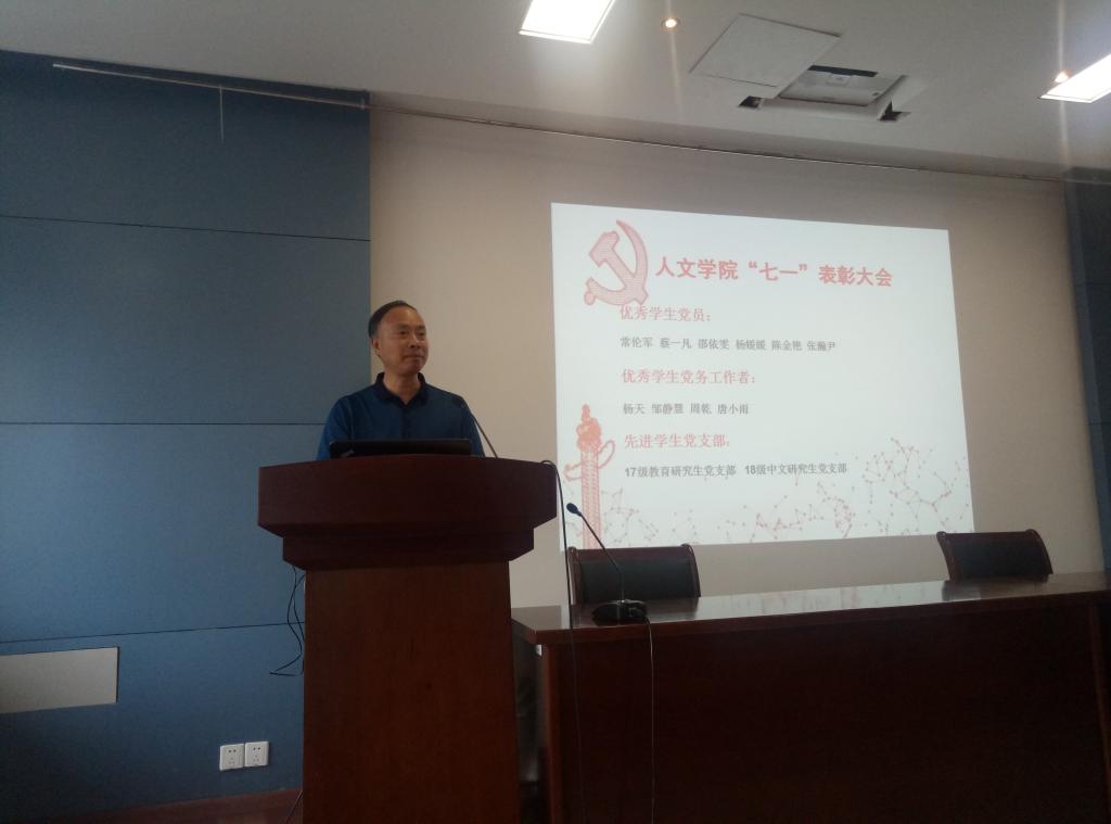 接着,沈贵鹏书记宣读了《成人片 关于表彰2018-2019学年优秀学生党员、优秀学生党务工作者、先进学生党支部的决定》。经过层层选拔与考核,常伦军等六位同学被授予“优秀学生党员”,杨天等四位同学被授予“优秀学生党务工作者”。17级教育研究生党支部和18级中文研究生党支部被授予“先进学生党支部”。范增良、吴宝锁、沈贵鹏分别为优秀学生党员、优秀学生党务工作者、先进学生党支部颁发了荣誉证书。
