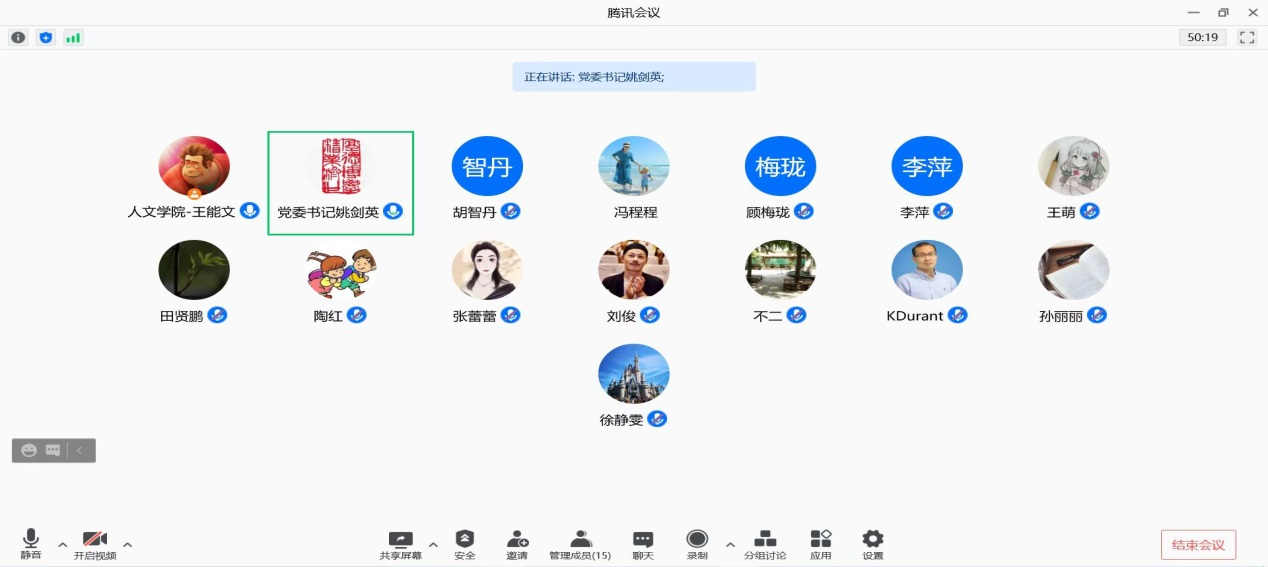 最后,姚剑英强调,学院各教工党支部要充分发挥模范带头作用,紧紧围绕学院中心工作,服务学院改革发展稳定大局,坚持立德树人根本任务,不断加强自身思想政治建设,以优异的成绩迎接党的二十大胜利召开。