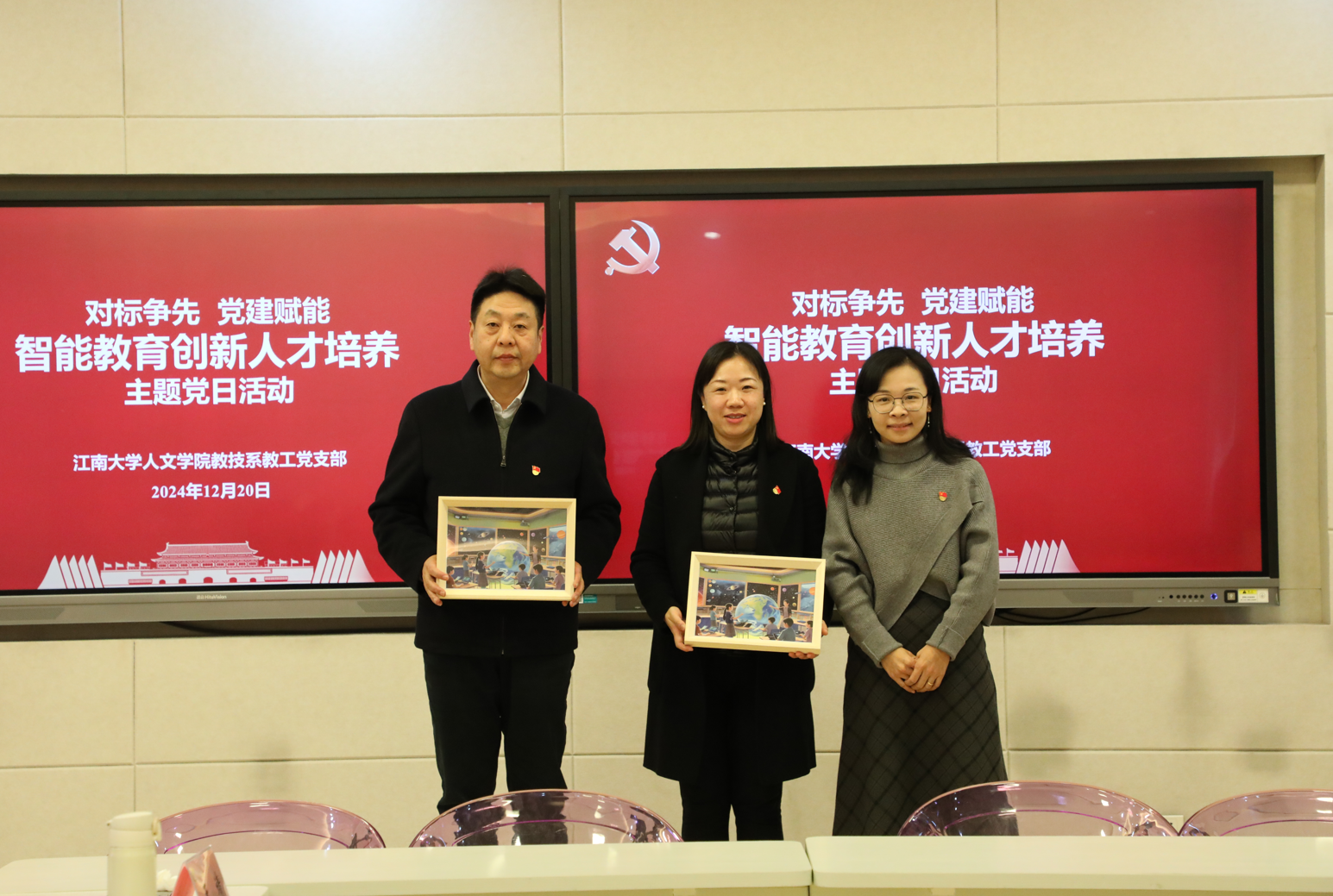 1220日下午,成人片 教技系教工党支部举办对标争先 党建赋能智能教育创新人才培养主题学习交流会。校党委常委、副校长倪松涛,学院党委书记王晖列席指导。会议由党支部书记王靖主持。