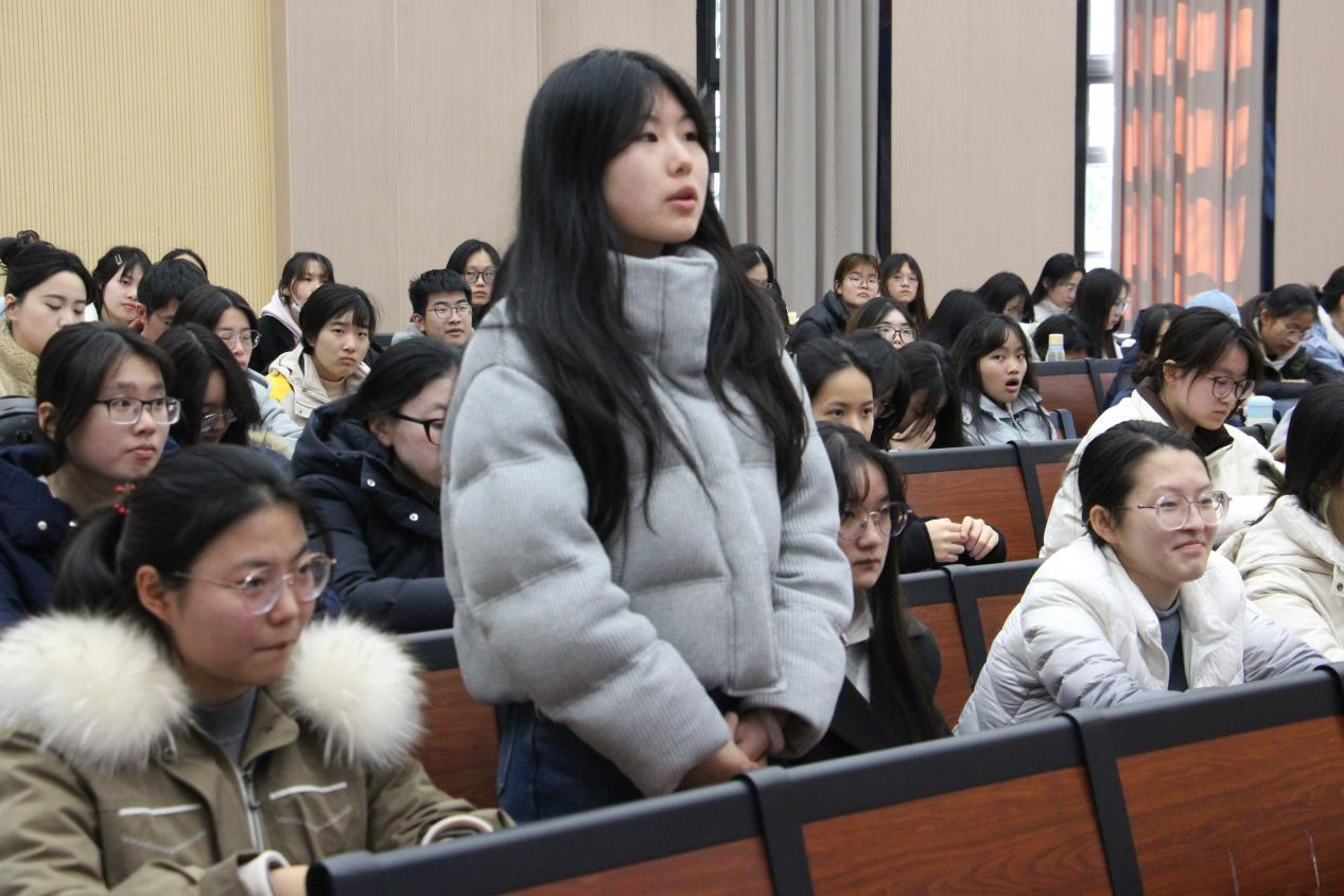 陈明选教授以“精神解码”为切入点,深入浅出地向同学们阐述精神不仅是个人砥砺前行的力量源泉,更是一个民族屹立不倒、生生不息的强大动力。随后,陈教授为在场学生详细梳理了延安时期的历史脉络,生动展现了那段波澜壮阔的历史时期的社会背景与辉煌成就。陈教授的讲述让现场的同学们真切感受到了革命先辈们坚韧不拔的信念与不懈奋斗的精神。最后,陈教授结合当今数智化时代的深刻变革,提出时空对话“当00后遇见延安的灵魂三问”:当同龄人在延安的窑洞挑灯夜读时,我们在做什么?当革命青年用热血丈量黄土地时,我们如何丈量青春?历史密码如何照见现实困境?从理论与实践、基因激活与青春接力的双重层面,深刻阐释了社会运动与教育变革之间紧密的内在联系,引发了师生们的深入思考。