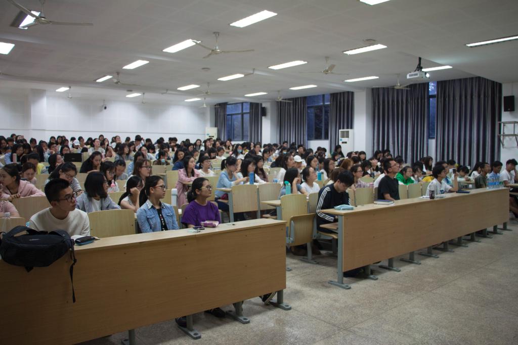 讲座伊始,李现伟老师首先向大家介绍了英语考试的分类,指出大学英语四六级考试属于语言类考试,要求相对较低。李老师强调,英语学习要注意日常积累,要养成自觉学习英语的习惯。他以幽默诙谐的语言,从词汇、句子、阅读、写作四个方面介绍了英语学习的术与道。四六级考试主要是关于词语的语法,李老师建议大家平时大家可以尝试去阅读一些英文原著,由简到难,不断提高个人语感和英语学习兴趣。他希望同学们能够将讲座的内容内化为自己的东西,花时间,找方法,养成良好的英语学习习惯。现场的同学们学习热情很高,认真记录学习要点,同时也就自身学习当中遇到的问题,与李老师进行了现场交流。