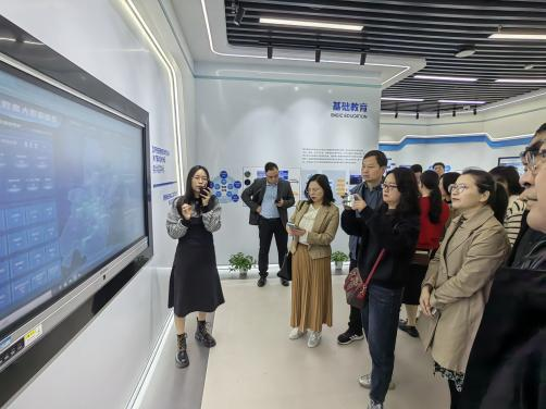 研学首站是华中师范大学的教育大数据应用技术国家工程研究中心,培训班成员参观了教育与大数据深度融合的创新研究应用平台。在这里,教育大数据的研究成果与湖北多所中小学深度融合,充分发挥公共服务功能,为智慧教育提供有力支撑。