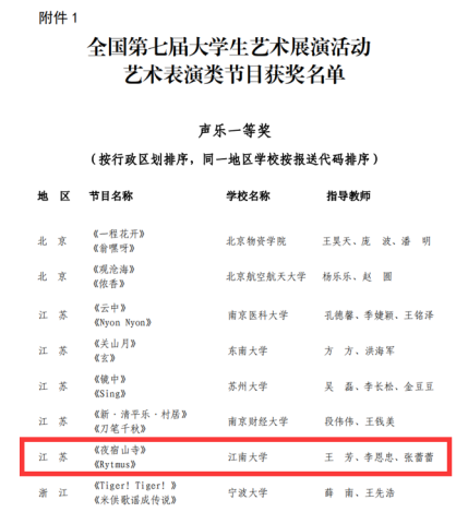 合唱团获得江苏省大艺展合唱乙组特等奖,并成功入围全国第七届大学生艺术展演活动,这是成人片