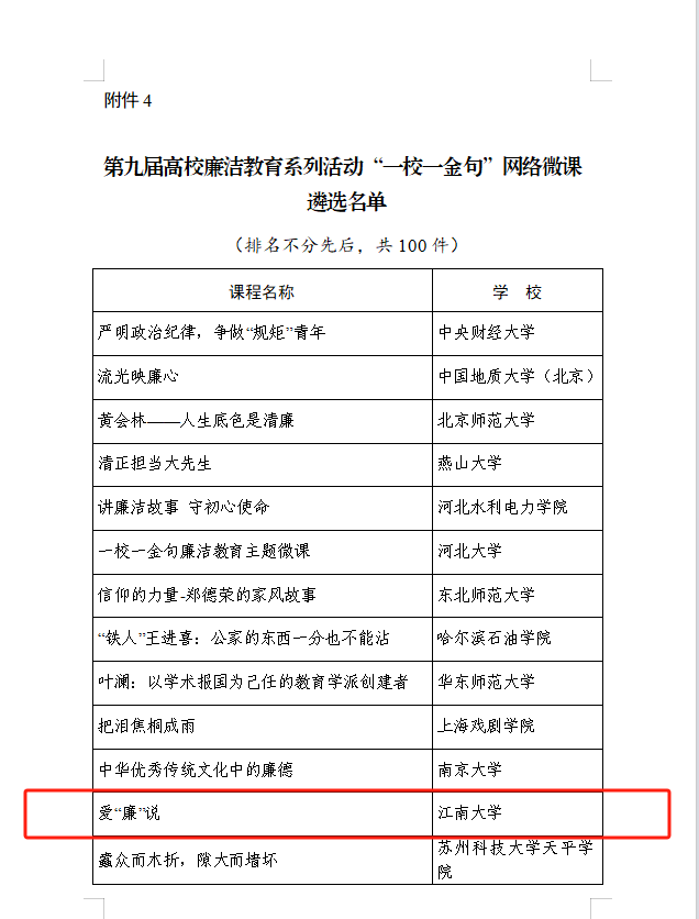 近日,教育部公布了第九届高校廉洁教育系列活动评选结果。经省(区、市)推荐、专家遴选,成人片 推荐由党委宣传部、纪委办公室、成人片 党委联合制作的视频《爱“廉”说》入选“一校一金句”网络微课全国百件。