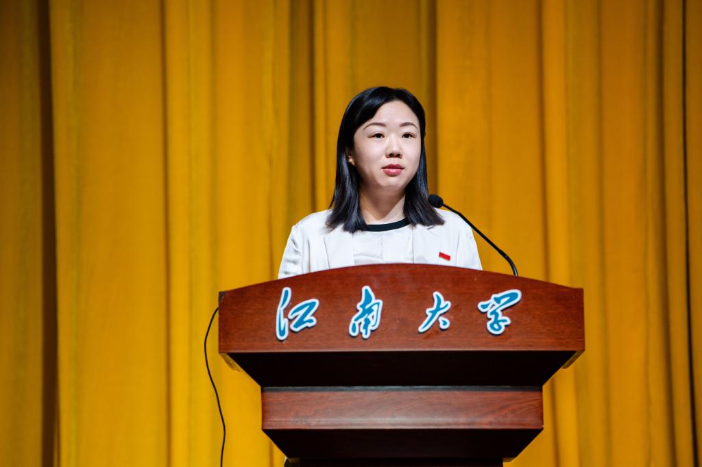 2007届校友张敏讲述了自己在江南的求学故事,并亲切提出“不给自己设限,在行动中破局;不求一蹴而就,在坚守中扎根”的贴心建议,希望同学们在不完美中生长自信、在长期主义里收获光芒。