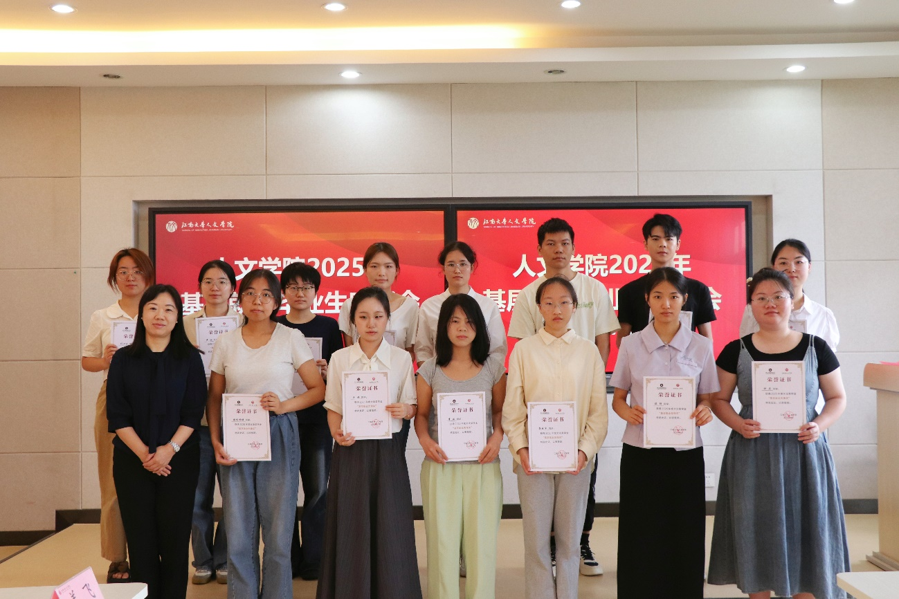 2025届“两项计划”的录取情况。本届毕业生中共有23位即将投身基层服务工作,其中11名同学参与“江苏大学生志愿服务乡村振兴计划”,12名同学参与“大学生志愿服务西部计划”(包括三名研究生支教团成员),人数创下学院历史新高。邵祥岚还以自身“西部计划”志愿者的经历勉励毕业生们用行动书写人文学子的责任与担当。
