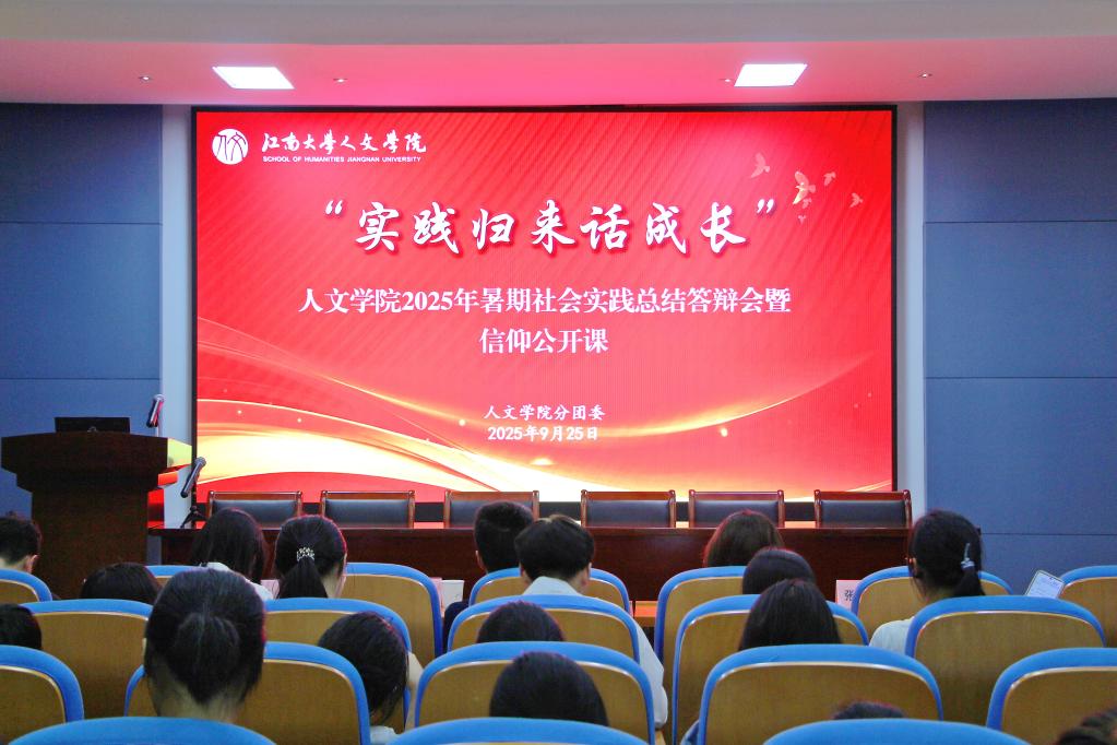 在田家炳楼209会议室举行2025年暑期社会实践总结答辩会暨“实践归来话成长”信仰公开课。学院分团委书记邓昌海,辅导员姜正一、刘畅、肖雨荷,兼职辅导员、校青年志愿者协会主席张佳慧,成人片