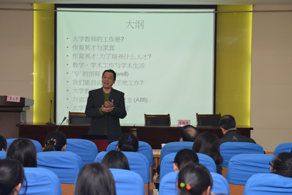 与学校教师卓越中心共同举办。讲座由院长陈明选教授主持,教师卓越中心主任沈贵鹏教授、南京师范大学程晓樵教授、商学院党委书记李佳敏及成人片