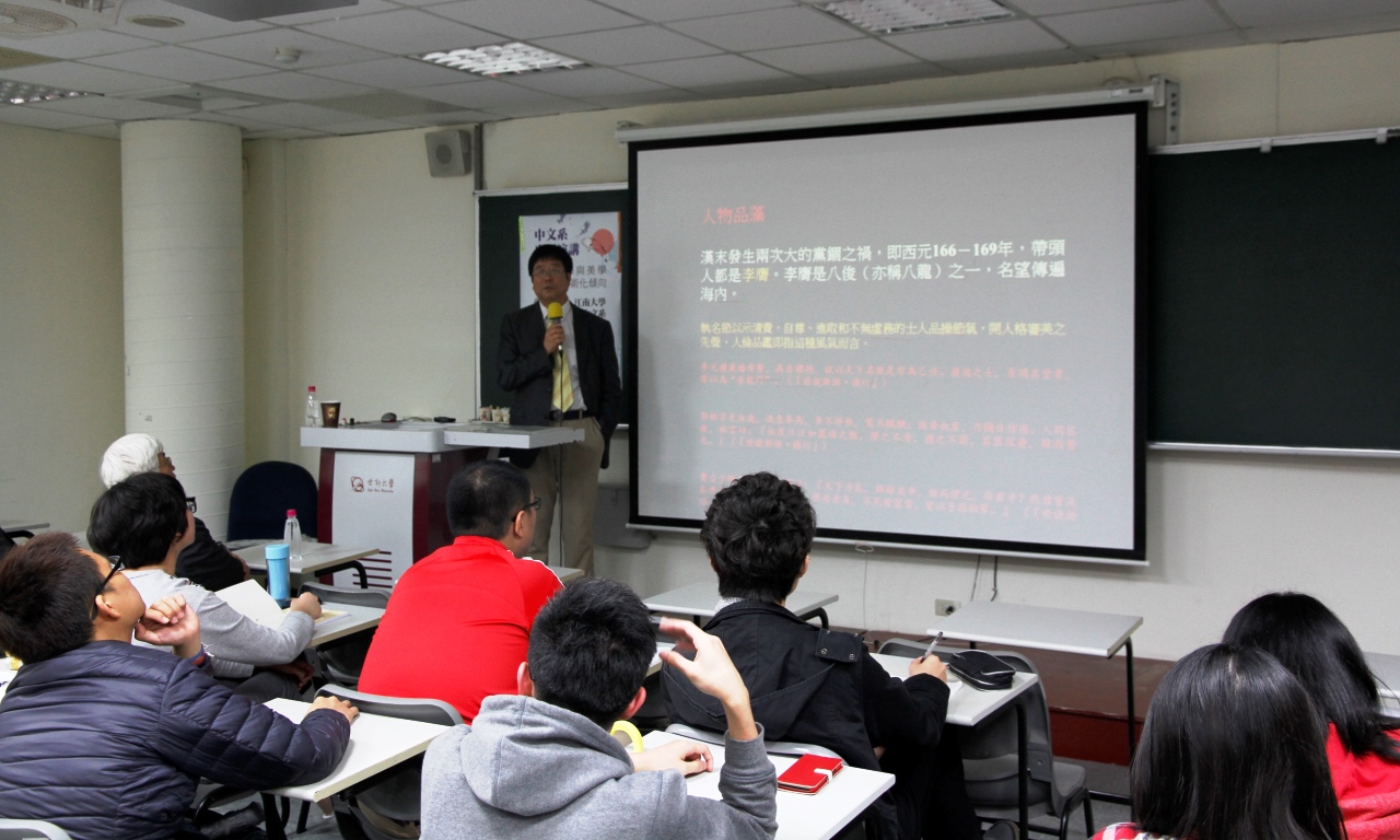 2014年3月20日,中文系赵建军教授在台湾世新大学做题为《魏晋玄学与美学的人生艺术化倾向》的学术报告。2014年4月16日,台湾东吴大学人文社会学院邀请赵建军教授在“中国沙龙”进行题为《中国古代的情爱与伦理》的演讲,与台湾著名学者进行了深入研讨。