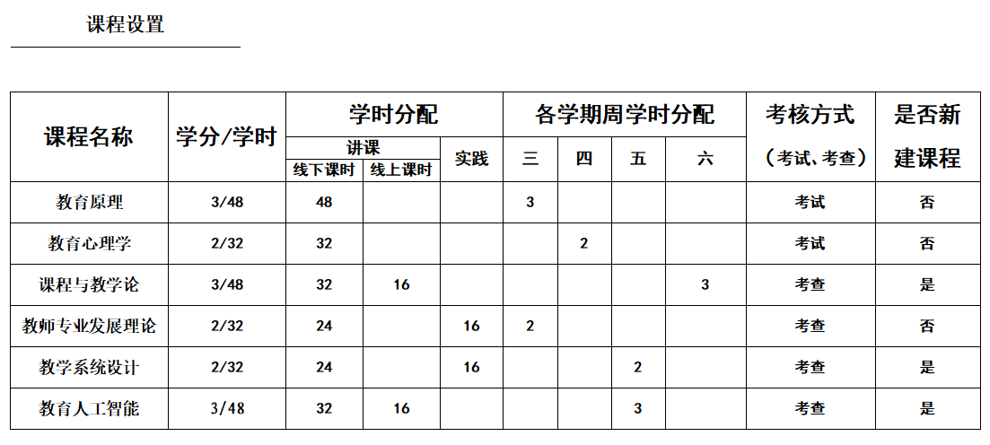 在教育数字转型的背景下,为学生开设技术前沿课程,例如教育人工智能、教学系统设计等课程,掌握人工智能技术使用策略,以确保微专业学生能够掌握人工智能技术支持教学。教育人工智能将建设成为线上线下混合课程。
