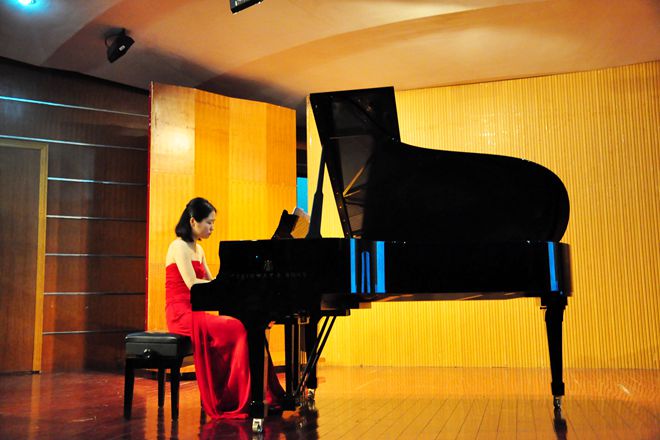 本次音乐会分两个半场,以“艺术课堂-讲演”的形式展开。上半场为朱昊冰博士的钢琴演奏与作品讲解。一开始,朱博士就用钢琴模拟《百鸟朝凤》灵动的鸟语声引入整首作品。而后,她又采用西方德彪西的名曲《月光》主题渐入中国名曲飘逸的《彩云追月》全曲。此曲奏毕,朱博士还和在场师生分享了她在美国演奏该曲的经历。接着,她又为大家带来了《浏阳河》《山丹丹花开红艳艳》等钢琴曲。她表示,中国传统民乐拥有独特的魅力,希望同学们积极感受中国民族音乐,增强对传统的认同感和民族归属感。整个上半场朱博士用心演绎了王建中先生的作品,谨此纪念她的恩师。音乐会下半场,朱昊冰博士携手男高音歌唱家尼古拉·沙莫夫带来俄罗斯经典声乐作品,既有大家耳熟能详的经典名曲《喀秋莎》、《莫斯科之夜》,又有俄罗斯作曲家拉赫玛尼诺夫的《练声曲》、《春潮》。在场同学反响热烈,情不自禁地哼唱,气氛十分活跃。