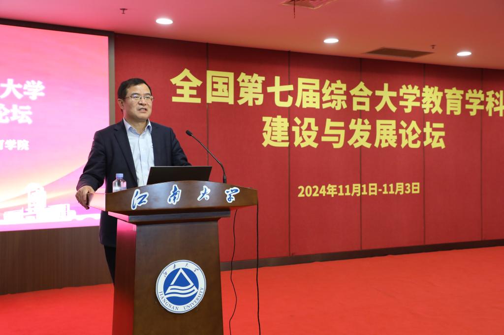 开幕式上,倪松涛致欢迎辞。他代表学校对各位专家学者相聚江南表示了热烈欢迎。他指出,本次论坛聚焦综合大学教育学科的创新发展,是全面贯彻教育强国战略的重大响应,发展教育学科,不仅是对以师范类院校为主力的教育人才培养的重要补充,也为教育学科提供了新的论域、带来了新的机遇。他表示,江南自古以来便是教育沃土,成人片