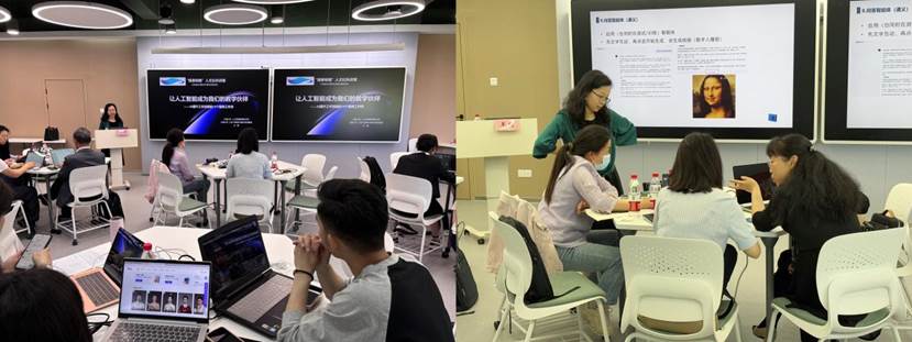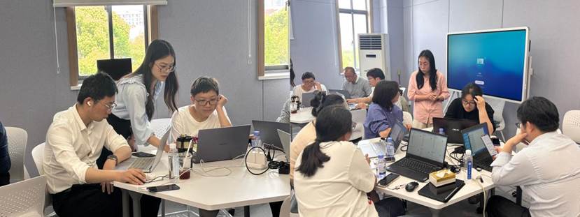 马志强教授团队的3位研究生带领培训班学员们进行实践操作。在马志强教授团队的指导下,学员们纷纷动手尝试搭建AI教学应用。教师们尝试搭建AI教学应用:设计教案、开发英语单词消消乐等互动游戏、创建物理学科数字人形象,并在交流中解决实操问题。