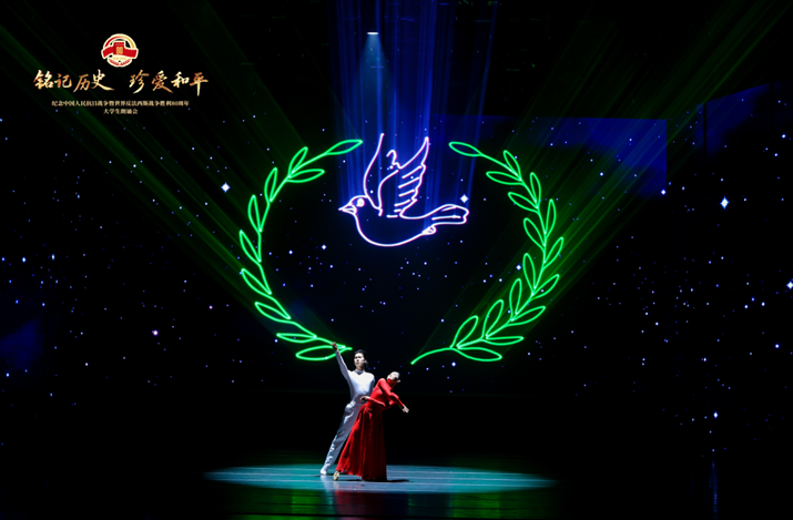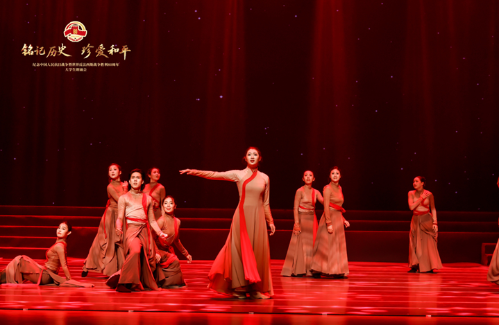 我校原创舞蹈作品《中华奇志》作为“江苏省教育厅遴选推荐的唯一舞蹈类节目”,成功献演于中国人民抗日战争暨世界反法西斯战争胜利 80 周年大型朗诵会。这一殊荣标志着该作品已超越校园舞台,成为承载重大历史叙事与时代精神的省级艺术标杆。