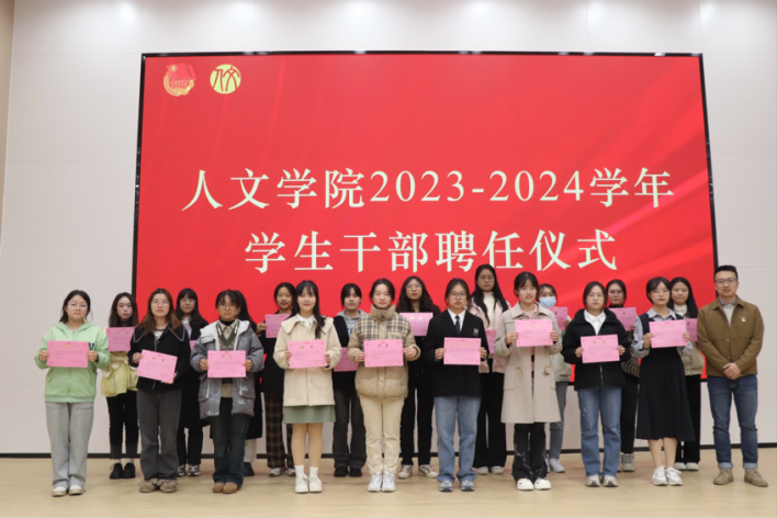 学生干部聘任仪式,由邓昌海宣读聘任决定,王金星、李婉婷为新任学生干部颁发聘书。