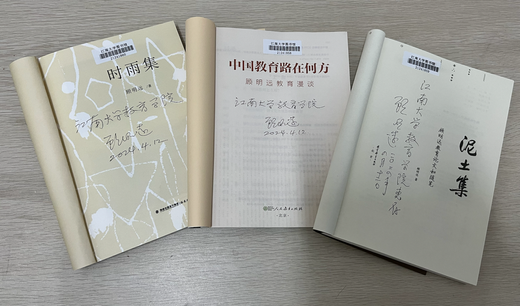 教育学学科的办学给予了充分肯定,强调后续办学一定基于学校所处地域做出特色,要与其他兄弟院校形成良好互补生态。最后,顾明远先生向学院赠送了手写的学记(影印本)以及多本著作,并签名留念。