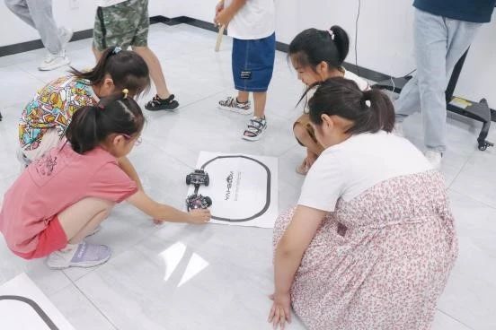 为了帮助小朋友们更加深入探索编程的奥秘,实践团结合参营小朋友所处学龄段,对课程进行定制化创意设计。实践团成员朱俐烨、吴怡菲等分别带来了kitten和机器人课程,向小朋友们介绍了Kitten平台基本界面以及图形化编程的基本原理和机器人编程的奥秘。经过耐心的讲解和系统的演示,大家逐渐掌握了图形化编程的基本技能,学会了如何组装机器人小车,以及如何使用Microbit平台编写代码赋予机器人不同的功能,例如避障和巡线等。