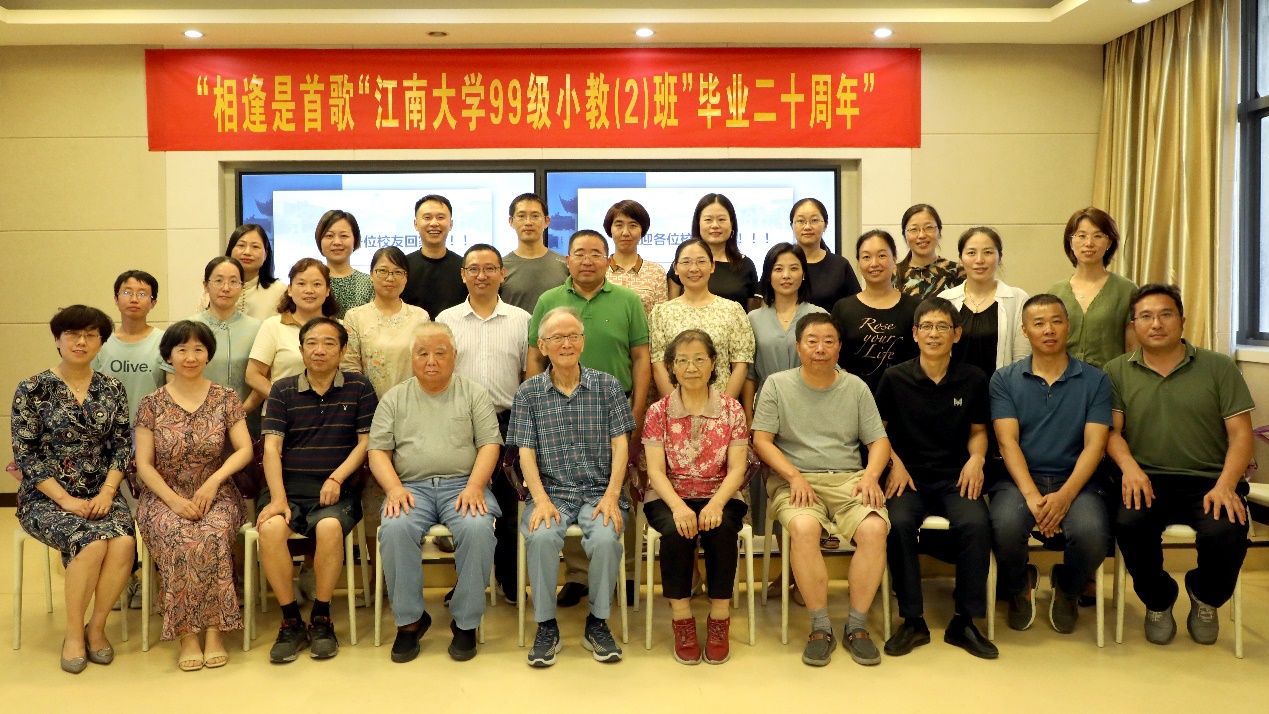“相逢是首歌,同行是你和我,心儿是年轻的太阳,真诚也活泼……”8月12日下午,1999级小学教育(2)班校友及恩师、领导等齐聚成人片