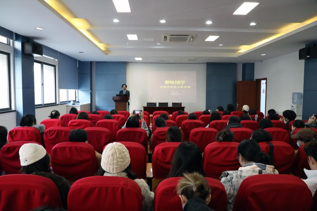 田家炳楼209报告厅,为音乐学专业的学生做了一场讲座,讲座的题目是《汉语古诗文入乐吟唱》,讲座由成人片