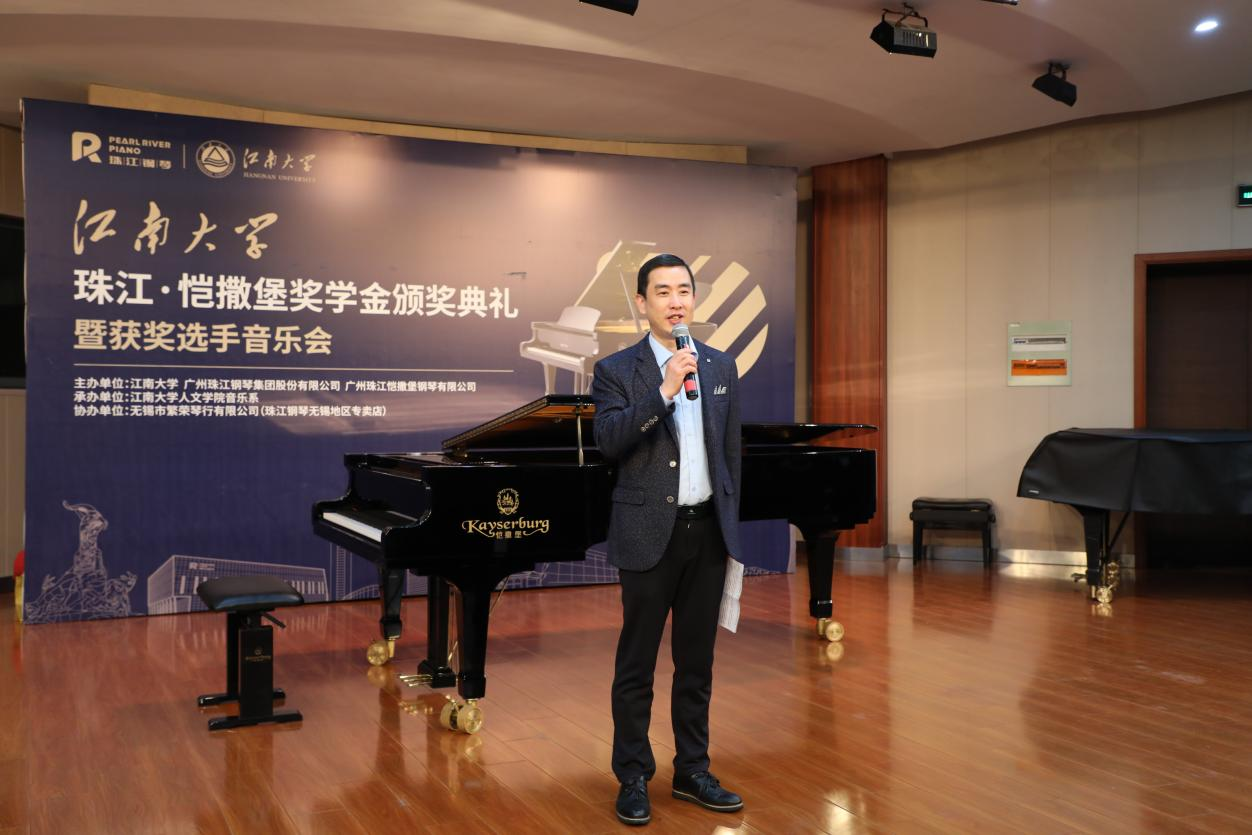 按照典礼流程,首先由广州珠江钢琴集团有限公司总经理助理胡武军上台致辞,他提出珠江恺撒堡奖学金由广州珠江钢琴集团提供,其目的是形成企业与高校的双赢合作模式,推进成人片