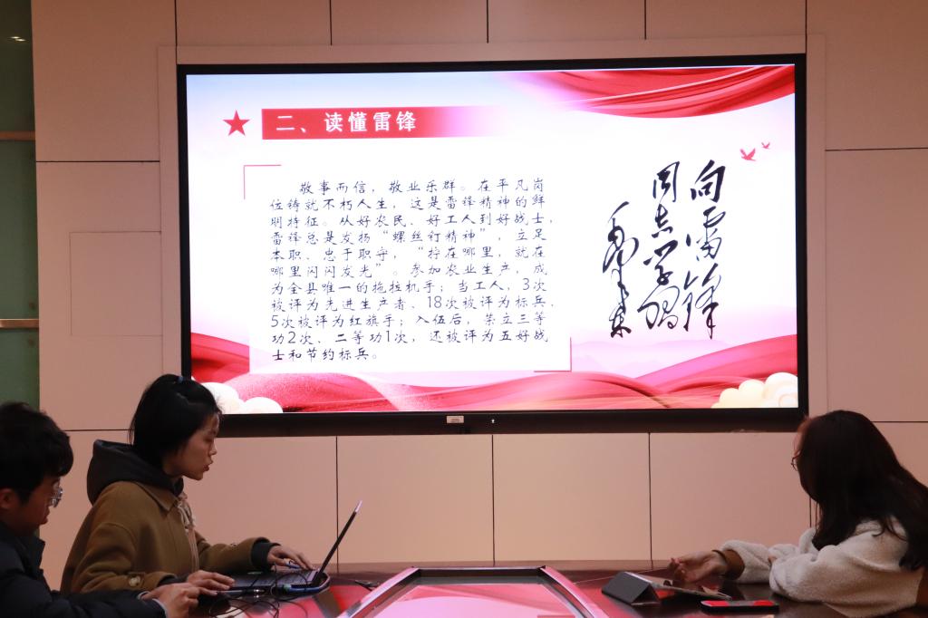 最后,团支部书记凌佳渝简要介绍了接下来“践行雷锋精神”的主题团日活动安排,团支部将发挥专业特长,以“信息技术知识科普”为主题,深入社区,走进课堂,开展社区公益课堂,中小学编程科普等志愿活动,用自身所能践行雷锋精神。