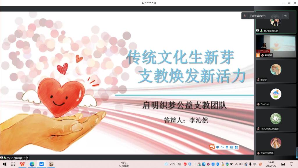 首届大学生公益创新大赛决赛在田楼209会议室顺利举行。此次答辩会采用“线上+线下”相结合的方式,在腾讯会议上同步直播答辩会情况。成人片