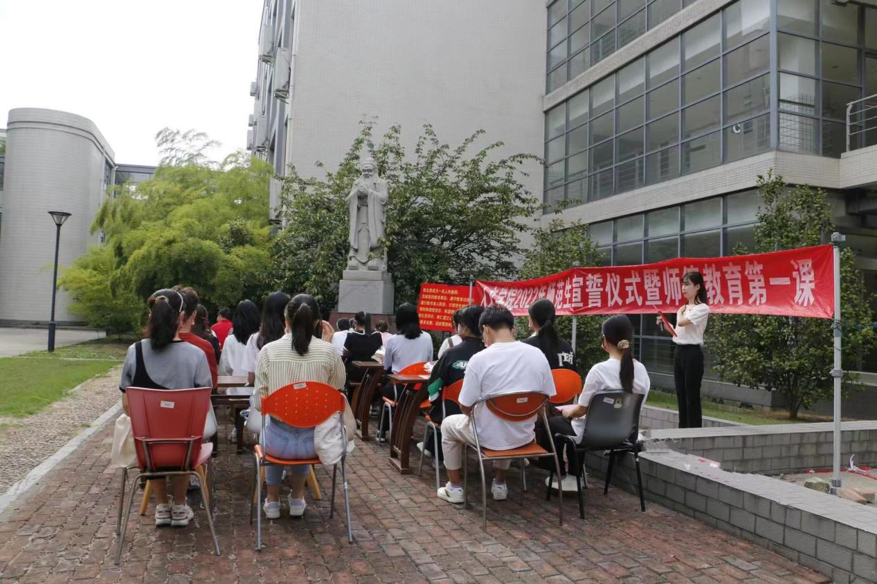 在第一教学楼北广场孔子像前隆重举行2022年师范生宣誓仪式暨师德教育第一课。成人片