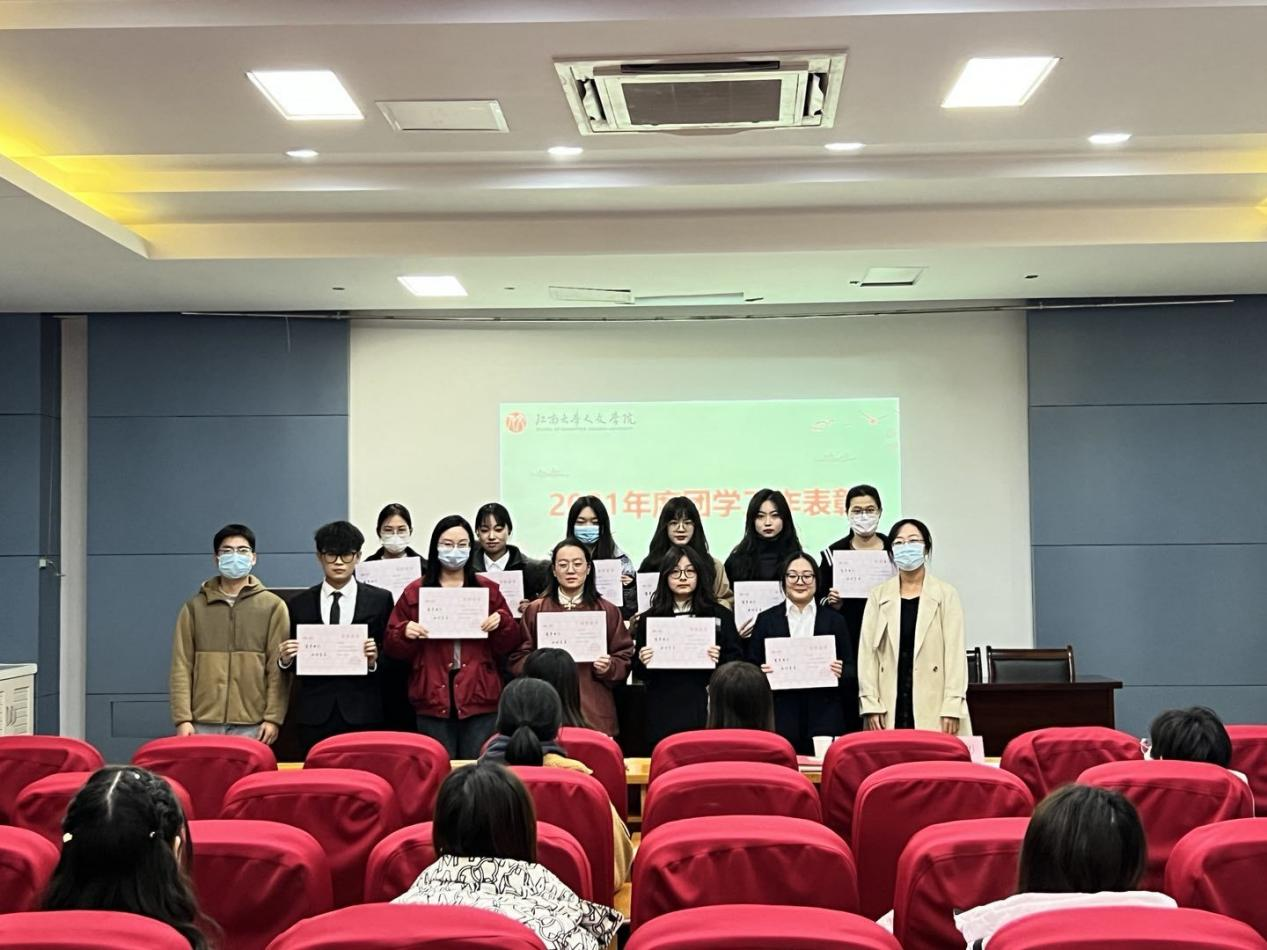 团学工作表彰,与会老师为在团学工作中表现突出的先进个人和集体颁发了荣誉证书。