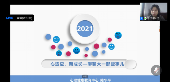 心理健康教育中心陈华平老师主讲,2021级全体新生参加了本次讲座。
