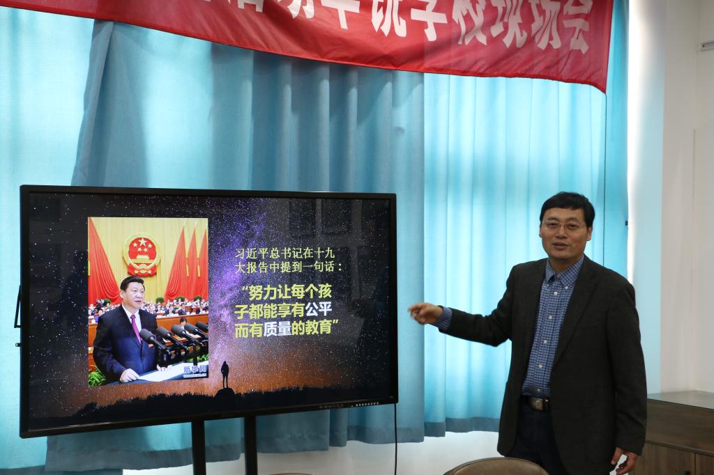 座谈交流会上,韩荣寨对母校领导老师的来访表示热烈的欢迎,感谢母校领导心系校友,对校友发展的关注。随后,他详细地介绍了教育集团概况、发展历程、取得成绩和发展愿景。他表示非常高兴看到母校的蓬勃发展,更荣幸能够在校庆日这天回归成人片