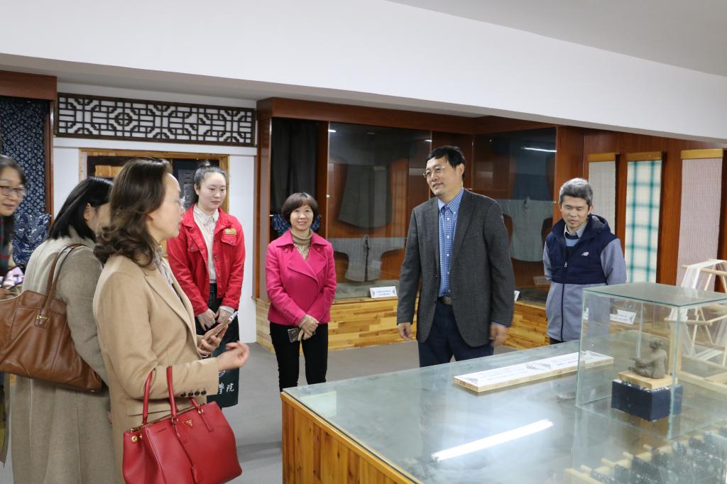 领导老师先后参观了实验学校内的无锡市蓝印花布博物馆、民俗馆、排练厅、演出厅、惠山民进二支部委员会之家等场所。
