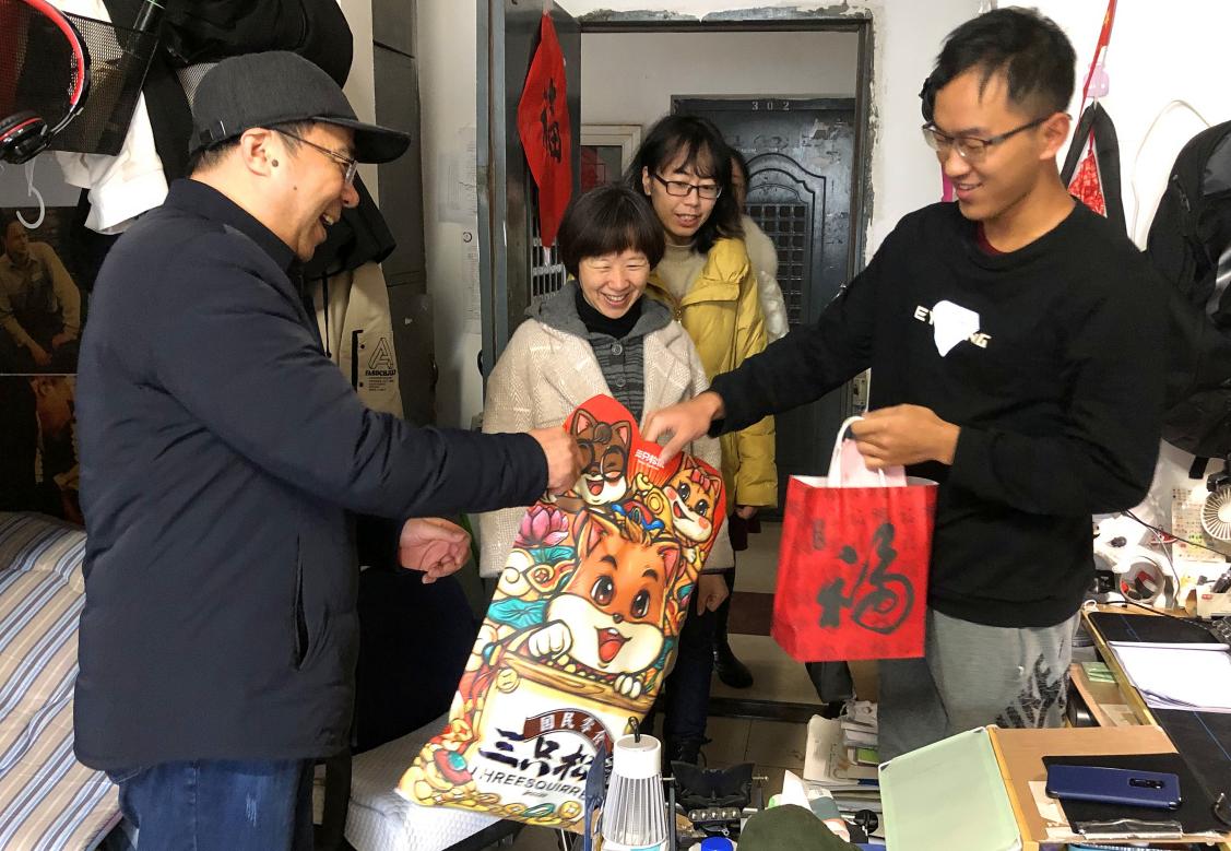 走访过程中,姚剑英、杨晖一行辗转5栋学生宿舍楼,走访了每一个留校学生宿舍,并一一询问了留校学生在校期间的学习生活情况,鼓励同学们积极调整心态,保持健康愉悦的学习生活状态,共克时艰。桂园的留校生主要是新疆籍学生,因为疫情防控的原因不能返乡,党委书记姚剑英叮嘱同学们在锡留校期间也要注意做好个人防护,常与家人联系,过个平安吉祥年。杏园、李园和桔园主要是陕西籍留校学生,因疫情防控要求留校至今,在收到学院领导老师送来的新春慰问品时表示,老师们的到来让他们倍感温暖。最后,他们来到学院研究生工作室,看望了正在写论文的赵震。家住陕西渭南的赵震因疫情防控要求不能返乡,随即决定在校踏实写论文,院长杨晖在交流中鼓励学生合理安排时间,留校期间不仅要把论文写好,也要生活好,让父母放心,让老师放心。