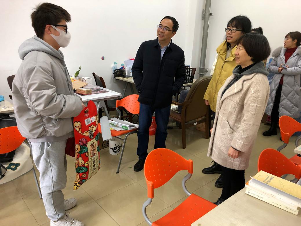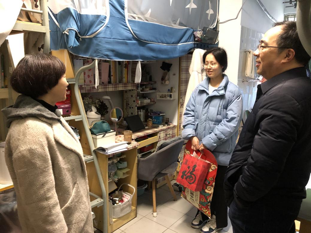 党委书记姚剑英、院长杨晖、党委副书记兼副院长李萍、分团委书记赵丽敏以及各年级辅导员一行8人来到学生宿舍、研究生工作室,看望慰问留校学生,为同学们带去温暖问候和新春祝福。