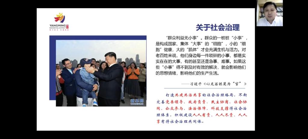 随后王志纯从今年元宵节时出现两例无症状感染者的事件讲起,分享了基层工作者如何在短时间内迅速响应,落实管控要求;又是如何将服务做细,让隔离变得充满关怀与温情。而后,他又分享了抗疫期间值守在各个岗位上的小故事,赢得了同学们的疯狂点赞。关于日常工作,他还与同学们分享了在达成“幼有善育、学有优教、劳有厚得、病有良医、老有颐养、住有宜居、弱有众扶”目标过程中,街道基层工作者们与辖区居民的小故事。最后,王志纯给立志从事基层社会治理工作的同学们提了几点建议:勤学、敢想、能说、会干、善写、拒腐。同学们纷纷表示受益匪浅,收获颇丰。