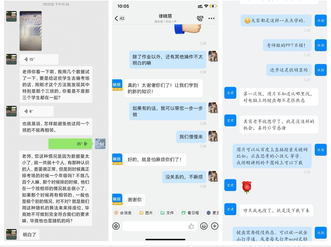 据实践团团长沈硕文介绍,因各种原因,支教活动临时从线下转为线上,对团队考验非常大。成员11位同学利用半个月的时间紧急备课,完成了面向31名乡村教师的为期12天的教学任务,共组织6大信息化基础知识模块,通过24个课时,累积授课750分钟,教授165余个知识点。