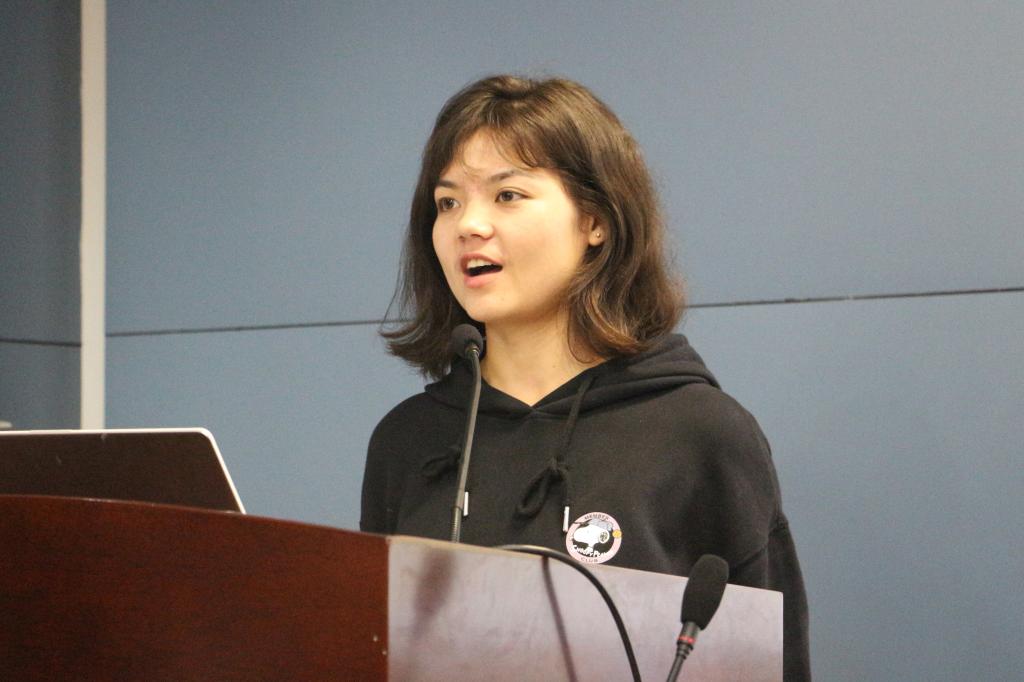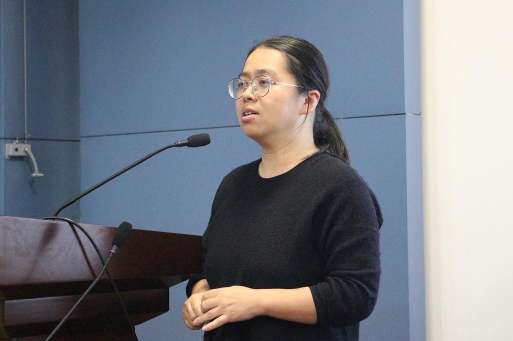 在“实践归来话成长”报告会中,首先分享故事的是先进个人代表——教技1802班的阿力米热同学。家乡在新疆的她在疫情爆发之际获得了来自志愿者的热情帮助,为此她深受触动,并同样选择了成为一名战疫前线的志愿者。那些她目睹战疫故事,不仅让她感触颇深,也让听众们印象深刻。