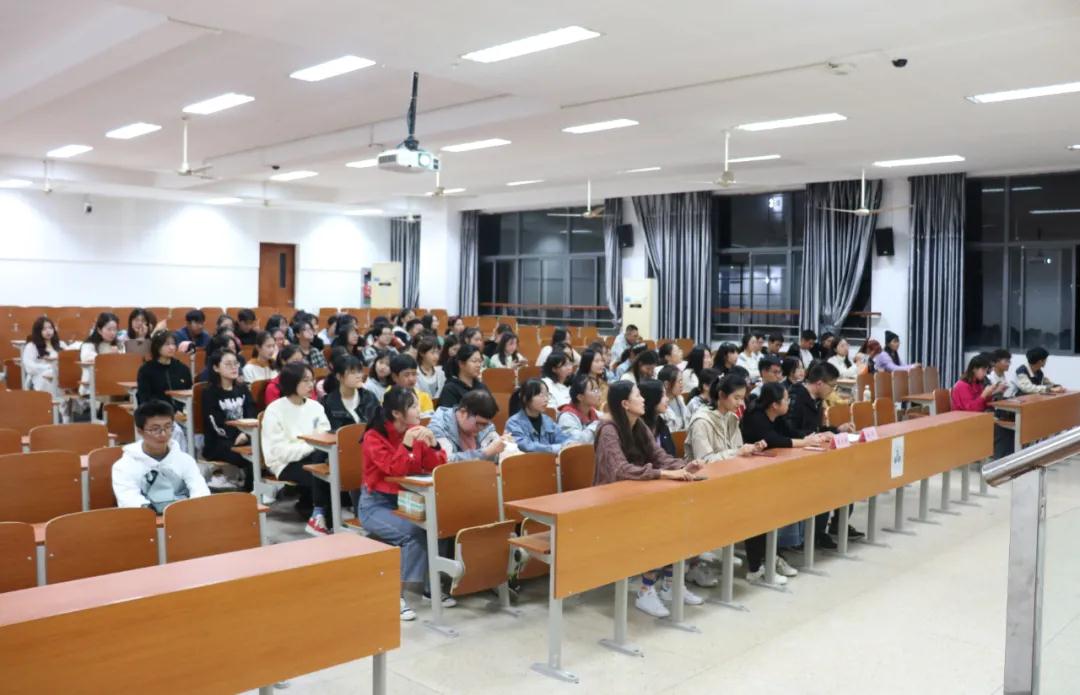 分团委书记黄凤琼老师。发言伊始,黄老师对加入院学生组织的新成员表示热烈地欢迎,对勤勤恳恳为学院付出的组织成员表达衷心地感谢。随后黄老师指出,学生组织的发展离不开学生组织所有成员的努力,身为学生组织成员,就要把自己的青春能量放入到学生组织的工作实践中。黄老师以“我变了,我没变”“我们一样,又不一样”作喻,要求我们在工作中更多地团结同学,了解所需。变的,是时光留给我们的层层历练和一年更比一年新的精神风貌;不变的,是我们为同学为组织服务的拳拳初心。初心犹在,何愁无星光作伴?梦想未失,何患无万物依仗?愿成人片