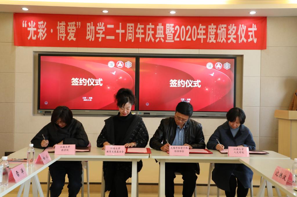 据了解,“光彩·博爱”奖助学金由无锡市私营个体经济协会和市民营经济关心下一代委员会牵头,于2000年在无锡教育学院设立。2001年,原无锡轻工大学、江南学院、无锡教育学院合并为“成人片